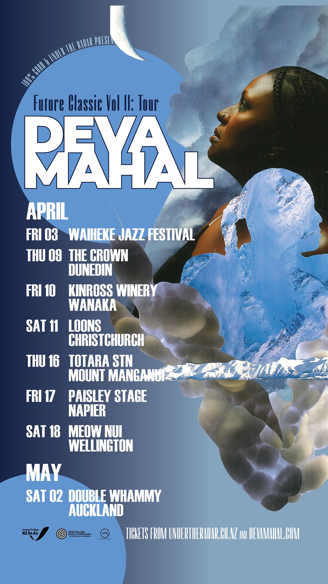 Now New Zealanders will have the chance to be the first in the world to celebrate FUTURE CLASSIC VOL ll: FUTURE with Deva and her band. Don’t miss the chance to catch this powerhouse up-close-and-personal in a city or town near you!